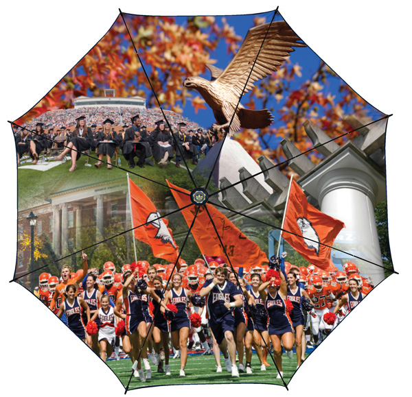 Umbrella Time USA produces custom umbrellas imprinted with anything from just text to full color graphics on both folding umbrellas and full size golf umbrellas. Because of size and imprint variables, it is best to contact us with your specific needs and questions so that we may give you accurate information and pricing. Examples of custom umbrellas are shown below.